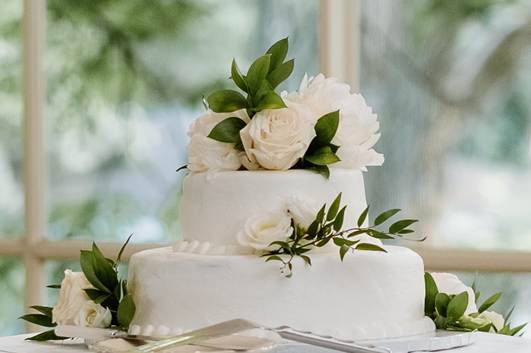 Typically, a cutting cake would be too small to be served to all of the guests as they may be serving a different dessert or have a dessert table with a variety of desserts. Having just a single or double layer cake makes for wonderful wedding pictures and an opportunity for the wedding couple to cut share in the traditional first bite of dessert as married couple.